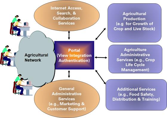 Figure2 shows portal view of an eAgriculture Center that can be customized for smaller or larger populations. As we will see, the services provided by this center will be heavily strengthened by the evolving Web2.0+ technologies. For example, we will refer to Figure2 Portal as eAgriculture2.0+, because Enterprise 2.0+ refers to enterprises that rely heavily on Web 2.0 and later models. Basically Enterprise 2.0, as coined by McAfee (see Exhibit1), shifts the focus of Web 2.0 from user communities and social networks to enterprises.