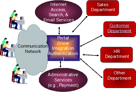 Figure3: Conceptual View of a Corporation Portal Additional Information: How to Develop Different Company Models in SPACESPACE uses the patterns shown in Figure1 and Figure2 as the foundation for developing a very wide range of Company Models by using the following steps: · Step1 shows all possible sectors supported in SPACE (see a sample list in Exhibit1). SPACE automatically creates a service bundle that includes the Common Administrative Services. · Step2 allows the users to select any of the listed sectors shown in Exhibit1 as a Primary Sector (e.g., retail, healthcare, education). SPACE shows the services of that sector so that a user can customize the list of services, if needed. · Step3 allows the users to include Additional Sectors to the company. For example, a healthcare company may add education and consulting as Additional Sectors. This is a very powerful capability for creating hybrid corporation models.